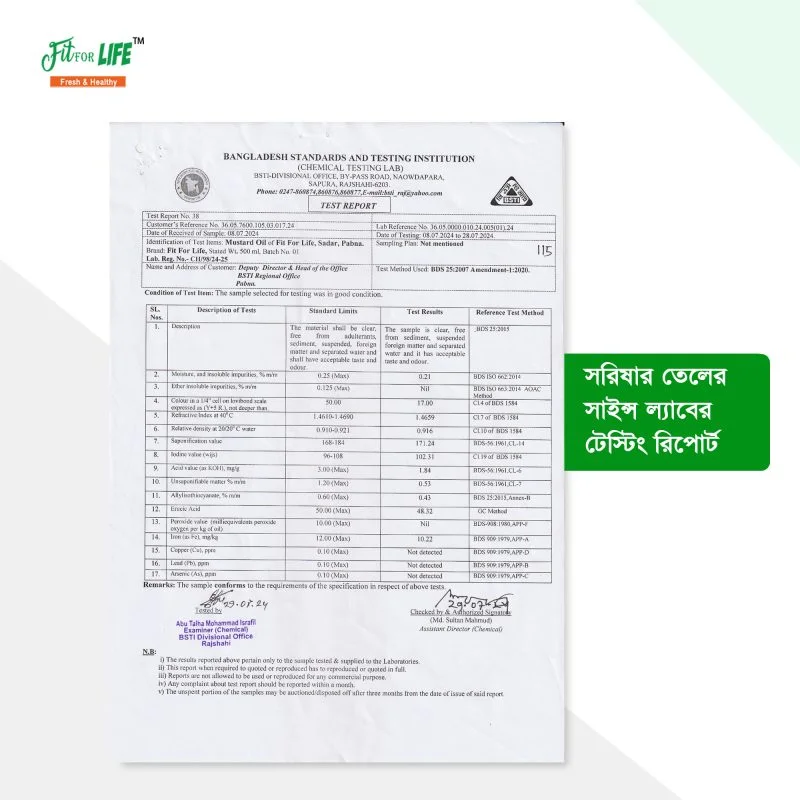 ✅বিভিন্ন স্বাস্থ্য উপকারিতার পাশাপাশি খাঁটি সরিষার তেল রান্নায়, চুল ও ত্বকের জন্য একটি প্রাকৃতিক উপাদান।সার্বিকভাবে, সরিষার তেল একটি সাশ্রয়ী, স্বাস্থ্যকর, এবং বহুমুখী রান্নার তেল হিসেবে বিবেচিত। আপনি যদি স্বাস্থ্যকর জীবনযাত্রার সন্ধানে থাকেন, তবে আপনার দৈনন্দিন খাদ্য তালিকায় সরিষার তেল অন্তর্ভুক্ত করা উচিত। স্বাস্থ্য এবং স্বাদ—দুইই বজায় রাখতে সরিষার তেল একটি আদর্শ পছন্দ।